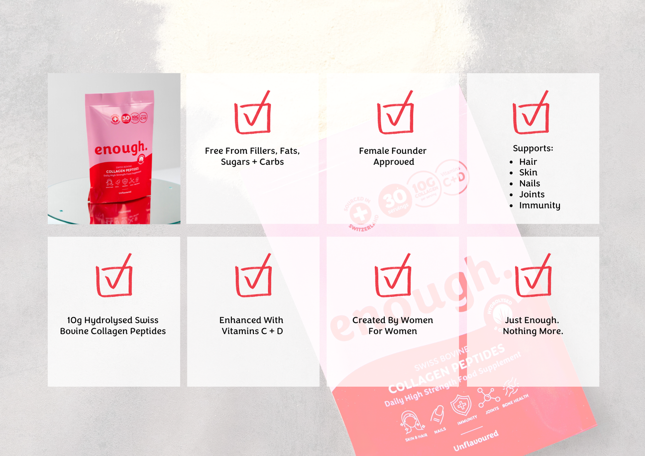 With Enough, you’re choosing a collagen that’s designed to support women, by women, with no compromises.