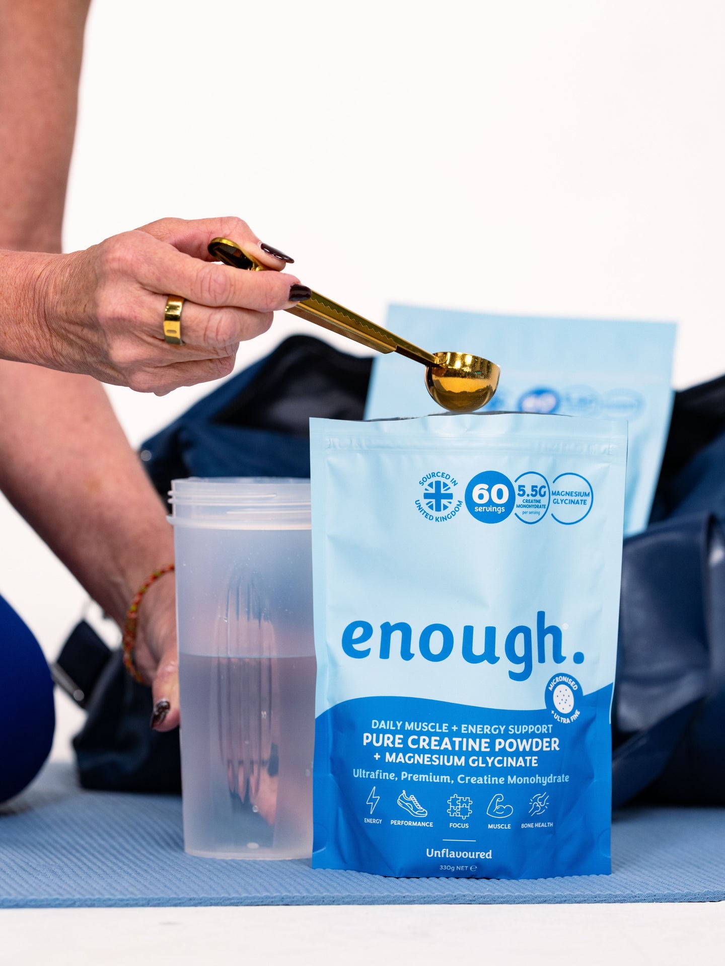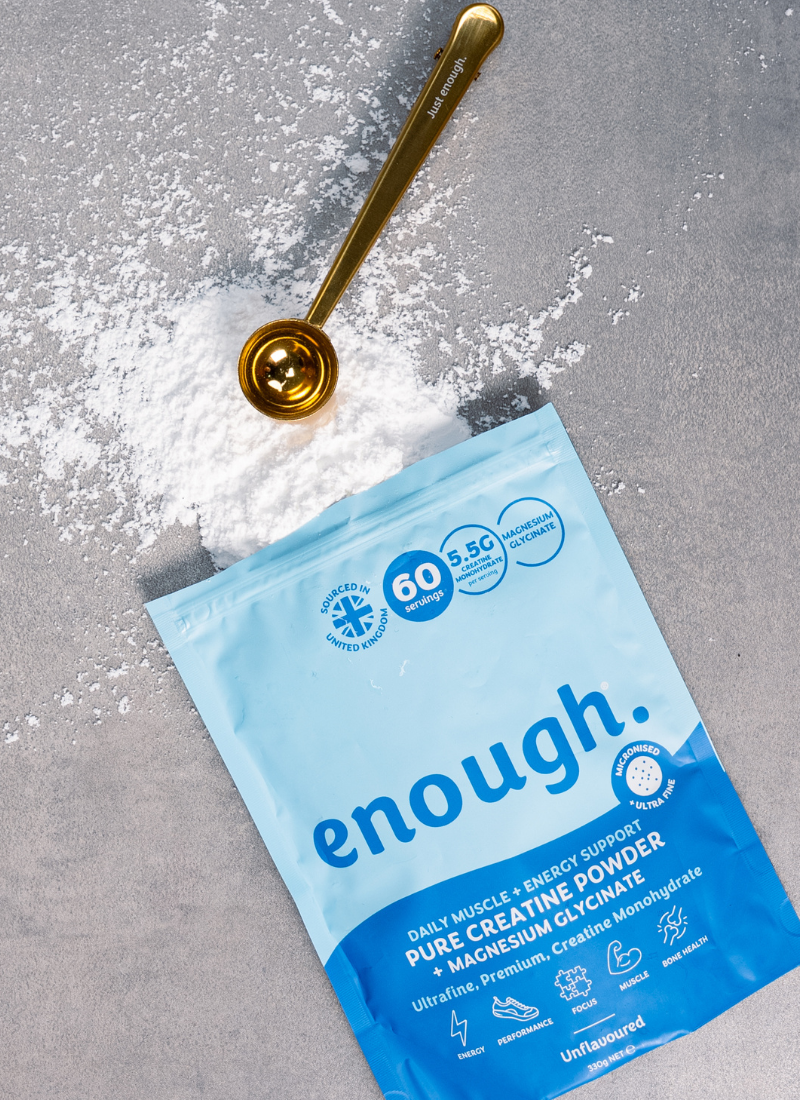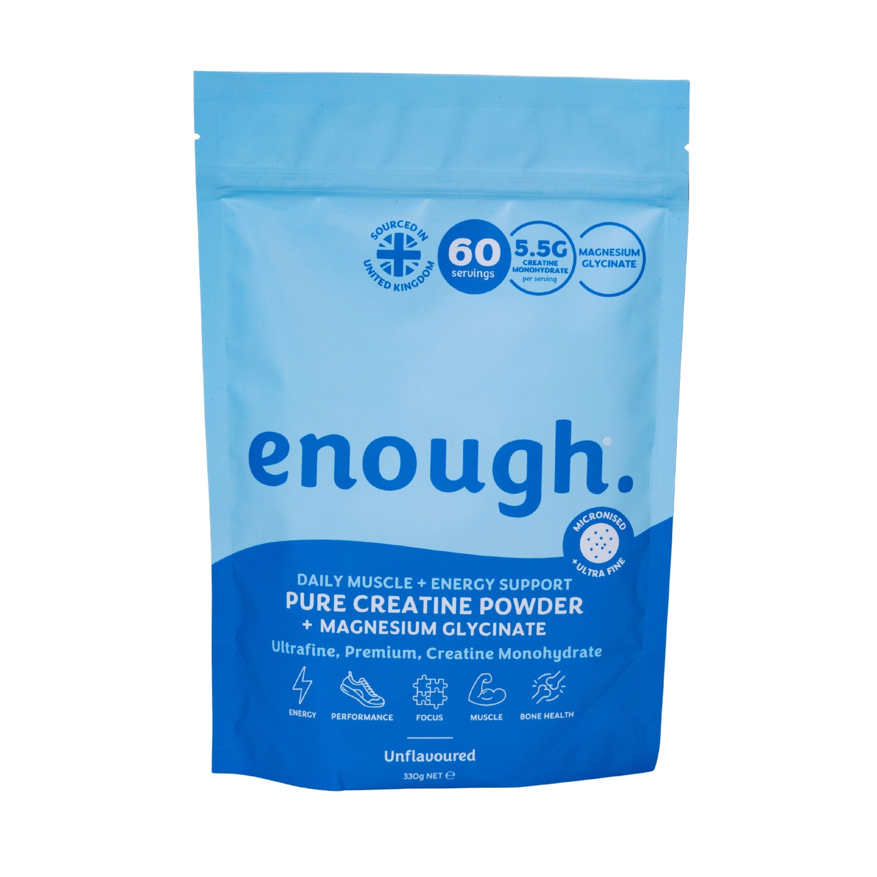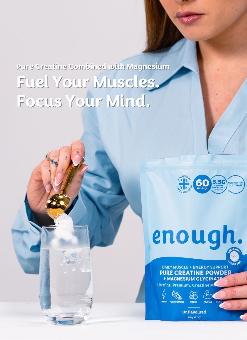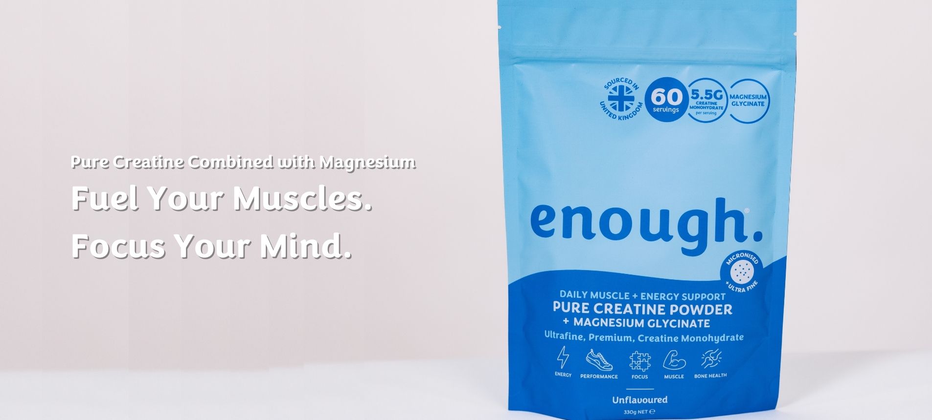Introducing our latest innovation: Enough Creatine with Magnesium Glycinate - a game-changing formula that combines two of the most researched and trusted supplements on the planet. Designed to fuel your body and mind around the clock, this daily essential powers up your performance by day and helps you fully relax and recover at night.