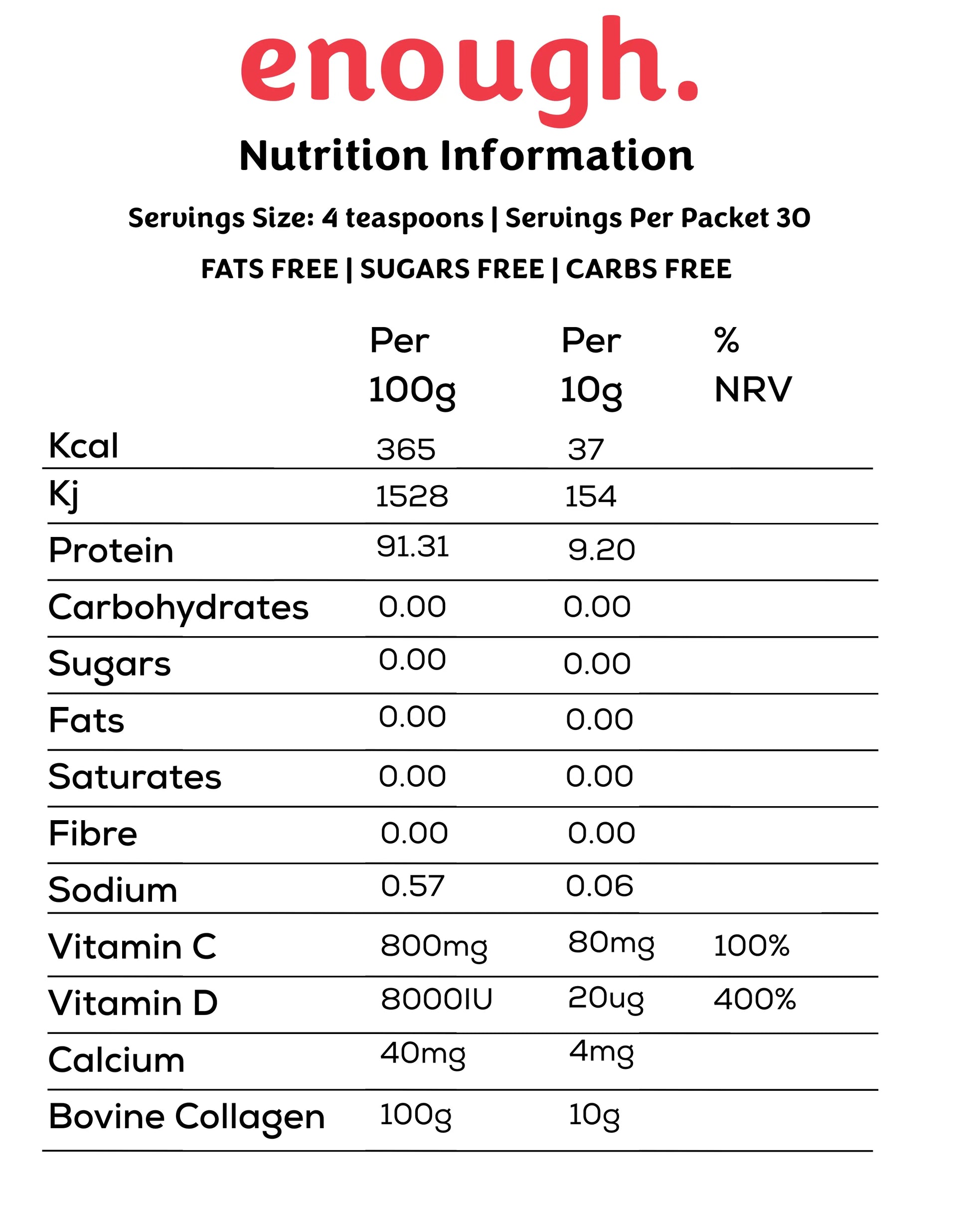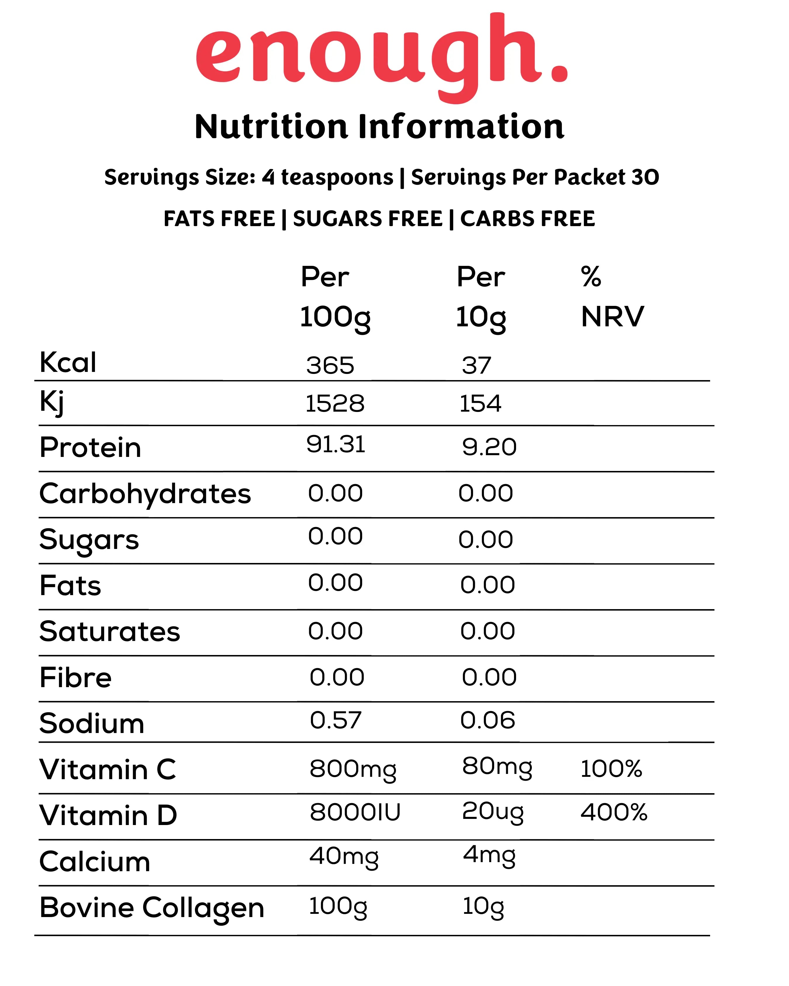 Mix four teaspoons (10g) into your favourite drink or one scoop of our perfectly portioned Just Enough. scoop.